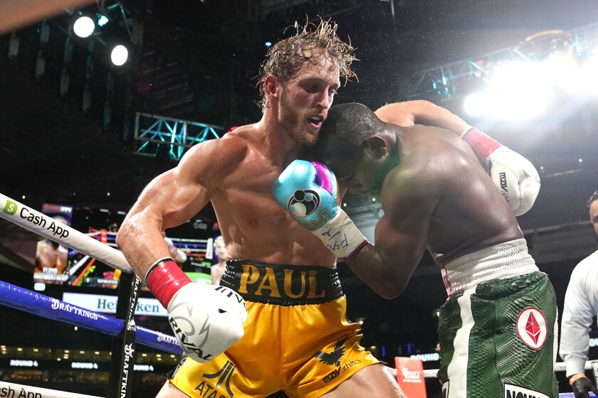 Floyd Mayweather Jr Lands More Punches Logan Paul Stays On His Feet For Full Bout Los Angeles Times