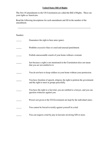 Bill of rights worksheet answers quizlet. Make a master copy of the bill of rights test answers printable. Step 1 Write a summary of the Bill of Rights on one side of a sheet of paper.